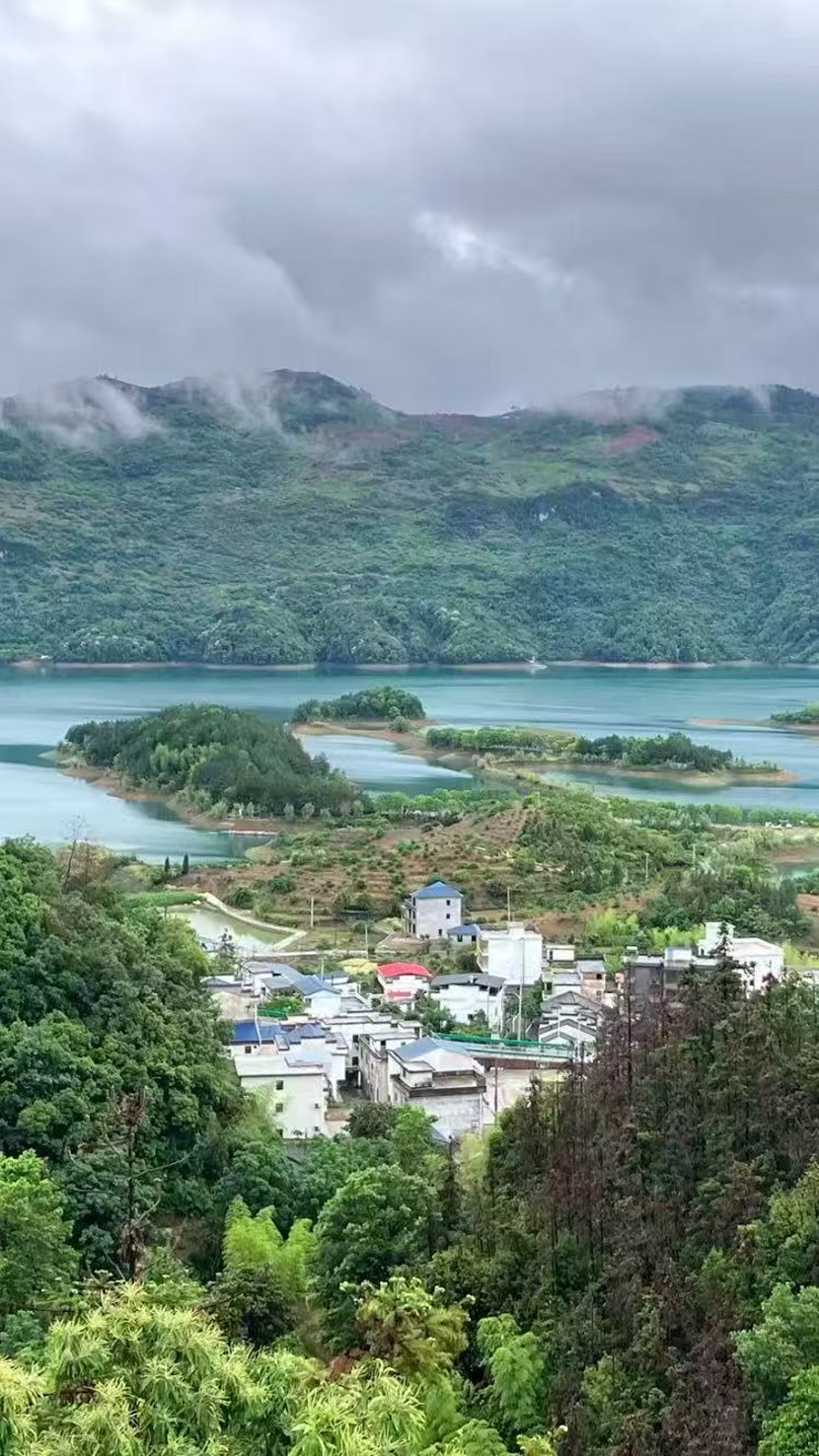 村居隐现林腰,映石壁苔痕翠未消。恰松风过涧,清芬沁骨;竹烟筛露,冷韵如箫。岁月沉溪,光阴淬岫,一卷氤氲水墨描。凝眸久,竟不知是我,已入蓬霄。