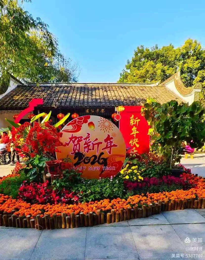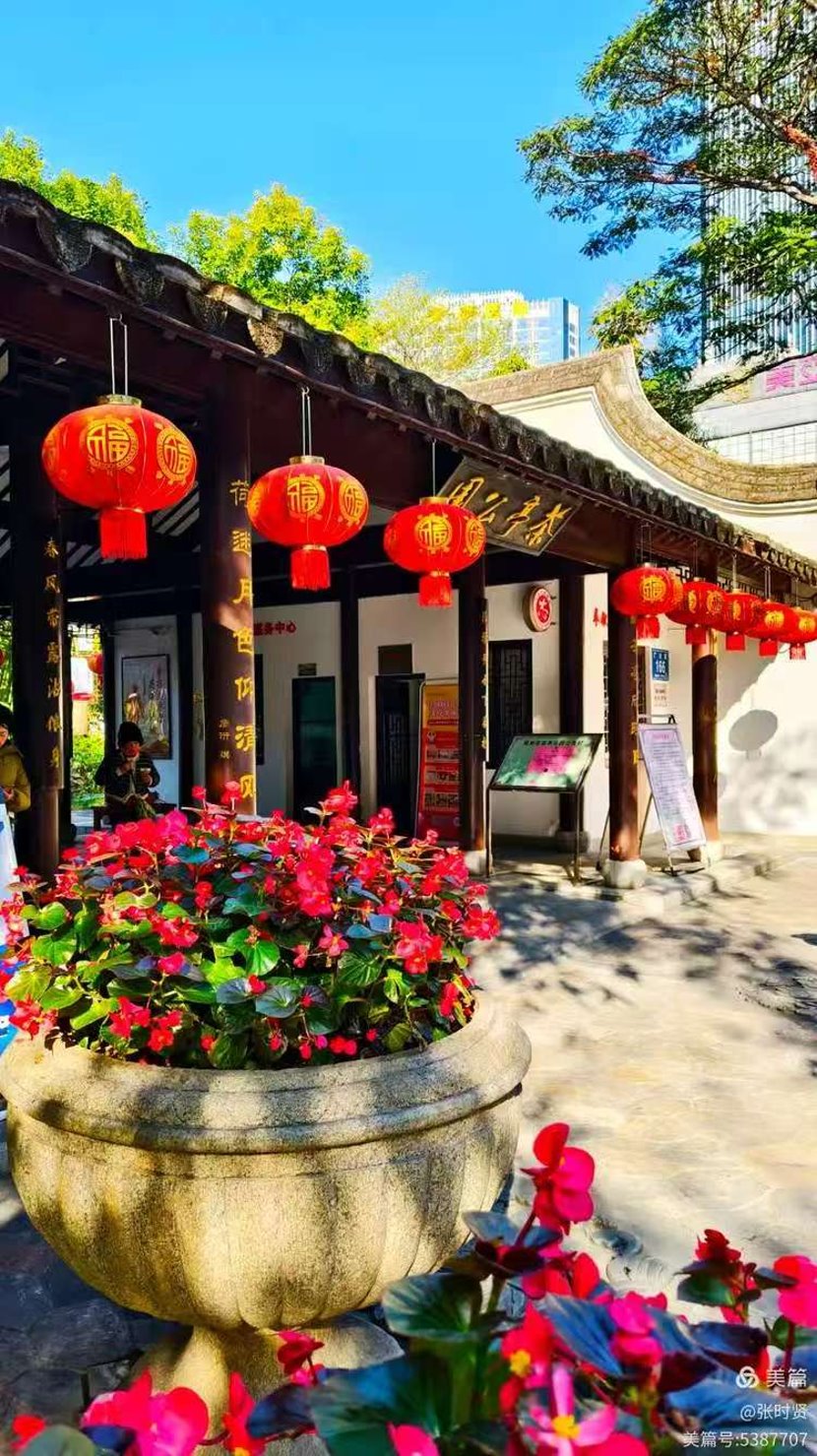 池畔暮冬:茶亭冬韵 1月13日清晨,福州气温回升,阳光普照,我来到茶亭公园与大自然共养生。 我从东门进,经过西门,绕湖一周,折返东门返回。两个大门前的古榕树和牌坊,红灯笼高高挂起,周边花团锦簇,迎春节气氛浓烈。 东门迎新春