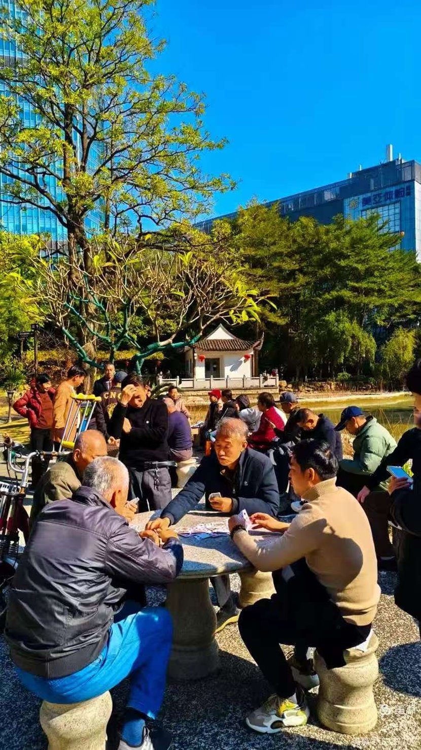 暮冬时节的茶亭公园,别有一番静谧而生动的韵味,仿佛一幅淡雅的水墨长卷徐徐展开。 虽然已是暮冬,但是公园里仍然林木葱郁,翠竹亭立,一派生机勃勃;儿童乐园的儿童在老人陪伴下嬉戏,尽享儿童快乐的时光;荷塘边,老人在阳光沐浴下打朴克,休闲、快乐地欢度幸福的晚年!