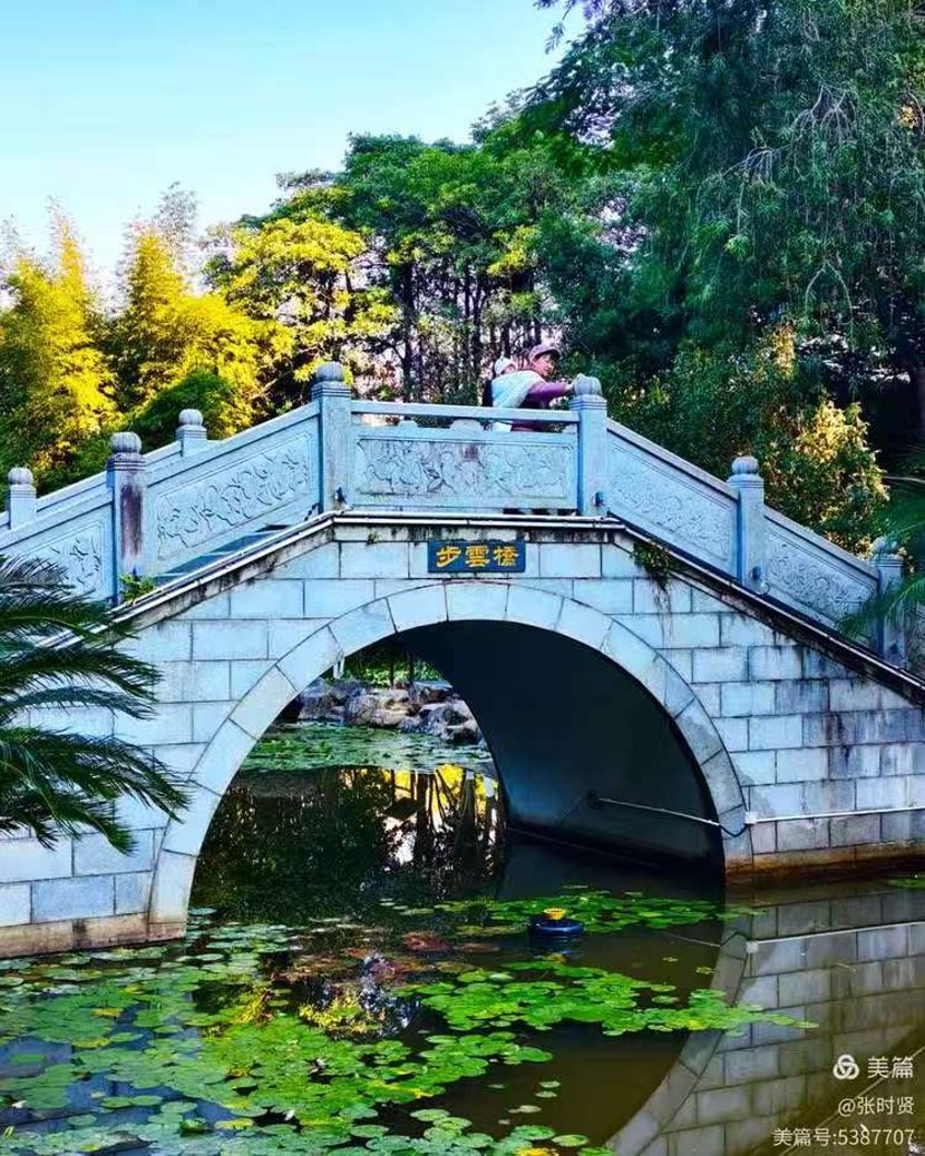 公园里的古亭、拱桥与回廊错落点缀,在冬阳下温暖如画,一座座古亭临水而建,掩映在林木深处,阴阴翠润,漫步其间,仿佛穿越时空,心境也随之宁静,古色古香,令人陶醉。