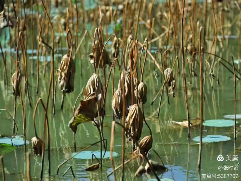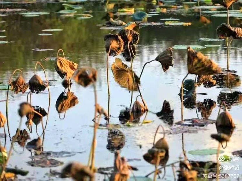 公园里荷池在冬日显得格外空阔,池中的枯荷虽褪去繁盛,却更显风骨,残叶挺立,与倒影交织,意境深远,正所谓“留得枯荷听雨声”,引人驻足遐思。 鹭鸟是这里的常客,它们或闲庭信步于池边浅滩,或轻盈掠水捕捉小鱼,优雅的身姿与清冷的水面相映成趣,为静谧的冬景增添灵动生机,真是美极了! 残叶挺立,更显风骨