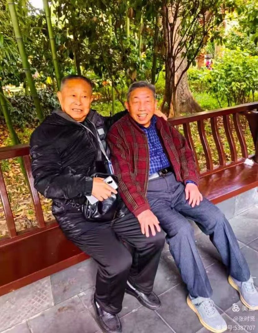 又是一次偶遇,前几天我在晋安湖公园与大自然共养生时,偶遇老同事黄运銓老师。 今晨我在茶亭公园的一个长廊观景时,突然看到一张熟悉的身影在他的老伴陪伴下向我走來,我走向前去叫了一声:柯老师,他楞一下,看着我,认不得我了。我说,我是张时贤,他啊了一声,说:“哎!真是认不出来了!” 我大吃一惊,想两多年前高工小区拆迁前,他几乎天天骑电动车来“高工小区离退休职工活动中心”的楼上打“斯诺克”,我在楼下打乒乓球,我们几乎天天见面,现在他仍然身強体健,一点也没变,而我们只分别两年多,相处几十年的同事却不相认了,我真是有点伤感。是的,这两年多来,我受各种疾病缠身,确实衰老了许多,从合拍的照片看他比我大我一岁,却比我年轻得多,就是最好的例证。没关系,既来之即安之,会一天天好起来的! 然后我们坐下来交换了当前的生活状况,互相勉励保重身体,他属牛的,大我一岁,今年89岁了(虚岁90岁了),我祝贺他奔九成功,互相加了微信,并请他老伴给我们拍照,她拍照的技术不错,谢谢了,嫂子!祝您们健康长寿,奔百成功,阖家幸福!