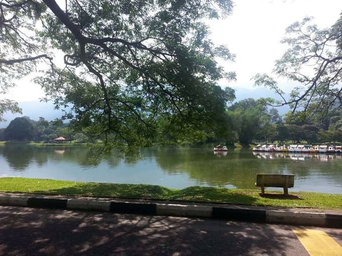 霹雳州见闻录(二) 太平湖是位于霹雳州的一座山城,太平市东北部的湖泊,海拔731米,气候凉爽的避暑胜地,它是由10个湖泊组成太平湖公园。百年前英国人在马来西亚开采锡矿完成后遗留下的废置钖矿湖。 在公元1888年当地地方政府经过多年经营发展,又从南美洲移植来的<雨豆树>种植于湖泊旁的道路上,高大茂密树枝好像是伸长手臂欲把那清澈湖水瓢起来撤向人间 (八景之翠臂擒波) 。又把十个大大小小废矿湖串起来成为一个64公顷的旅游休闲公园,设有小桥、流水、喷泉,还有一群群鱼儿在水中游来游去,有此绿草如茵的环境,碧绿的湖泊犹如一面镜子。 它拥有著名的八大景观:     1.翠臂擒波;2.曲桥待月;3.碧水红莲;4.竹韵琴声; 这里的草地都被修剪的整整齐齐,又保持得很清洁,景色之美,绝不逊色于杭州西湖。希望同学、校友们来马来西亚旅游时,别错过这最有诗意的湖泊公园。 杭州西湖在上世纪我曾两次到游,都是在蒙蒙细雨中上游艇观光,有点雾里看花之感,印象中是很美,和太平湖的秀丽,两者各有千秋,各有所长,都值得留恋忘返! 由于导游已多次催促团员们上游览车了,我只能等待下次有机会再来作全面观看,忽忽拍下儿张照片留念,太平湖呀!下回我会和同学、校友再来作无拘无束、随心所欲的重游!