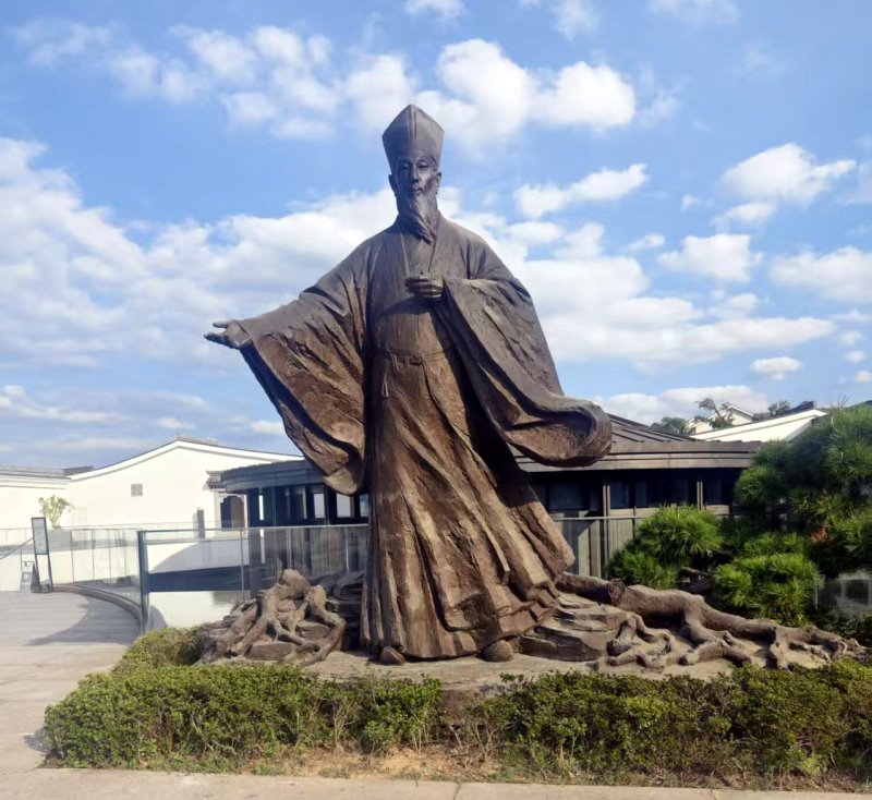 历史名城——绍兴 戴明哲(厦门)高十二组、原副校长 因为前些年的疫情,又由于年纪大了,多年没有出远门。这次大儿媳朱静要去绍兴,绍兴是鲁迅的故乡,久仰之地,我们借此同行。 10月28日我们从厦门乘坐动车出发。列车经泉州、莆田、福州,一路向东。车过了闽东山区,到达浙江温州,群山退去,眼前豁然开朗,出现了大片的平原。正值深秋,原野秋色已浓。田里的水稻已经成熟,在阳光下发出金黄色光芒,一片连着一片;一条条的水渠像毛细血管分布于田间,它们又连着大小不一的河道,一派江南水乡风光。田野边上的村落,房子大多是两三层的别墅,黛色屋顶,黄色牆体。房前有水,绿树环绕。这里是鱼米之乡,这里是富庶之地,地美物丰。隋炀帝凿了运河来此,乾隆皇帝六下江南。这里有大量粮食产出,因而有了南粮北运,有了清朝的槽运。美丽的山水,富饶的土地,蕴育了江南文明。千百年来,这片土地上出现了多少英豪之士,这里发生了多少历史胜事。 到达绍兴后,我们入住的旅社叫大禹开元观堂。与通常的城市旅社不同。旅社的住房都是平房,古香古色。门前是石板路,房周围有多条水道环绕,水边柳树枝条下垂,随风摇曳。水上有多条石拱桥连接两岸。夜晚月光下泄,照亮了石桥、绿树,行走其间,让人心境平和,别有一番情趣。 大禹开元观堂就座落在会稽山下。会稽山是座名山,山上矗立着大禹的塑像。大禹在治水之后在这里举行盛会,会稽山下盛极一时。以后大禹殁于此,葬于会稽山麓。四千年过去了,虽然此地留有守墓人的后代(姓姒),但墓在何处已无法确认。 我们在老城区参观,城区全是平房,木构建筑,由于年代已久全呈灰黑色。商铺很小,挂着红色灯笼,斜插着黄色的招牌。路是石板路,石头也是灰色,很光滑。在巷道中有一蔡元培故居。蔡元培出生于此,清朝末年考中进士后长居北京。他后来当了北京大学校长,广纳贤才。他对中国的教育有重要的贡献。 绍兴地区开发得很早,这里是越国地域。绍兴是越国都城所在地。勾践、范蠡、西施的历史故事流传千年。勾践的卧薪尝胆故事,仍在激励现代人艰苦奋斗。我们在参观市区时,看到城中心圈出一大块地,来自河南的考古队正在挖掘,要从地下存物进一步证实绍兴是越国都城,获取古代的文物。在不远处有勾践父亲的陵墓,因交通不方便没有前往。 东汉时期,许多文人雅士居于绍兴。书圣王羲之就住在绍兴。我们来到王羲之故居前。故居大门上有赵朴初书写的门匾《戒珠講寺》四个大字,由此可见这里是寺,为何又是王羲之的故居呢?原来当年王羲之丢了他很喜爱的珠孑,怀疑珠子是一个和尚拿去,那和尚很委屈,因而自尽。后来珠子复得,並非那和尚所取。王羲之很后悔,就把他的房子献给和尚所在的寺庙,那寺庙也由此得名。据说,当年王羲之书写之后就在大门前的小池洗笔,久而久之,池水变黑,这小池因而被称为墨池。王羲之故居所在街区,有一个老太婆卖扇,扇子卖不掉,十分苦脑。王羲之见状,同情那妇人,就在那些扇子上题字。很快的老太婆的扇子都卖光了。后来人们就把王羲之题扇处的小桥叫题扇桥。老太婆得了好处后天天缠着王羲之要他题扇,王羲之不得已常从一条小弄溜走,人们把那小弄称为躲婆弄。 公元353年的一天,王羲之和他的文人好友聚集兰亭。我们来到今天的兰亭。兰亭所在地,到处是茂林修竹。兰亭有个很大的湖,湖中有大片的莲花,湖中有一亭子叫流觞亭。湖水清澈,边有假山,一群白鹅在水中浮游。可惜的是,这时已是秋日,荷叶都已枯黄。若是夏日,湖光水色,荷叶田田,那是何等秀美呀。在湖边竹林前有一大片石砌平地,平地中有一条长约百米的流水,流水清亮,曲曲弯弯,流水边散落着一个个石凳。当年和王羲之在此聚会的共有四十二人,包括大名鼎鼎的东晋官员谢安。这群人做了一个游戏,叫曲水流觞。让酒杯顺水而流,当酒杯停在某个地方,边上的人要作诗一首。游戏结束,共有诗文三十七篇。把这些诗文集成一集,要写序言。在众人推荐下王羲之于微醉的状态下,神采飞扬,挥笔写下了千载流传的《兰亭序》。《兰亭序》由此扬名天下。时间到了唐朝,李世民非常喜爱《兰亭序》,临终时交代儿子李治,要李治把《兰亭序》与他同穴。《兰亭序》的真迹存于李世民墓中,以后传世的都仿真品。 在唐代,刘禹锡写了篇《乌衣巷》的诗,其中有句“当年王谢庭前燕,飞入寻常百姓家。”可见当年王谢两家是何等风光。 南宋时期,绍兴有位大名人,那是爱国诗人陆游。陆游怀有大志,想收复被金国占领的河山。由于种种原因他壮志难酬,写下了“此生谁料,心在天山,身老沧洲。”的诗句。直至暮年还念念不忘,因此有了“王师平定中原日,家祭无忘告乃翁。”的悲愤句子。可惜这次无缘参访陆游故居。在参观鲁迅故里时途经沈园。沈园是一沈姓大户的后花园,一直到现在风貌仍存,保持了当年的亭台楼阁,小湖水榭,花草树木遍布园区。这里曾经发生陆游与唐琬凄美的爱情故事。十分恩爱的陆游和唐琬,被陆游的母亲拆散了。一次,陆游和唐琬在沈园相遇,两人百感交集。陆游写下了著名的《钗头凤》,“红酥手,黄滕酒。满园春色宫墙。东风恶,欢情薄。一杯愁绪,几年离索,莫,莫,莫!”唐琬见词,悲伤欲绝,一病不起。她抱病写下了和《钗头凤》的词,“母情薄,人情恶,雨送黄昏花易落。晓风乾淚痕残。