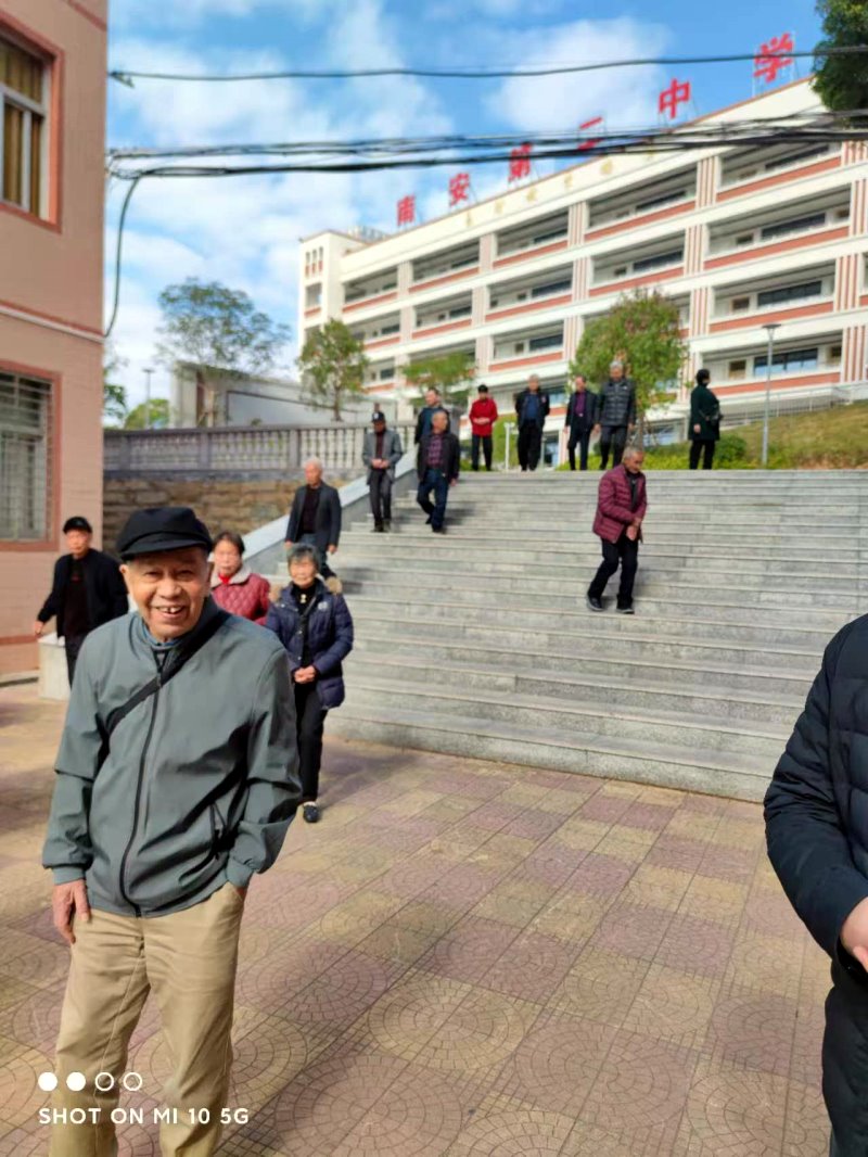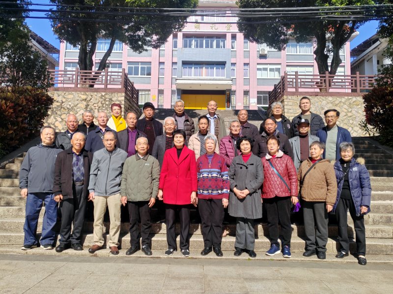 青丝白发过云烟,母校重逢甲子迁。黉舍四排同授读,宗祠一座共餐眠。晨操曾伴钟声响,夜习常随油气燃。莫道桑榆时已晚,红霞瑰丽享遐年。