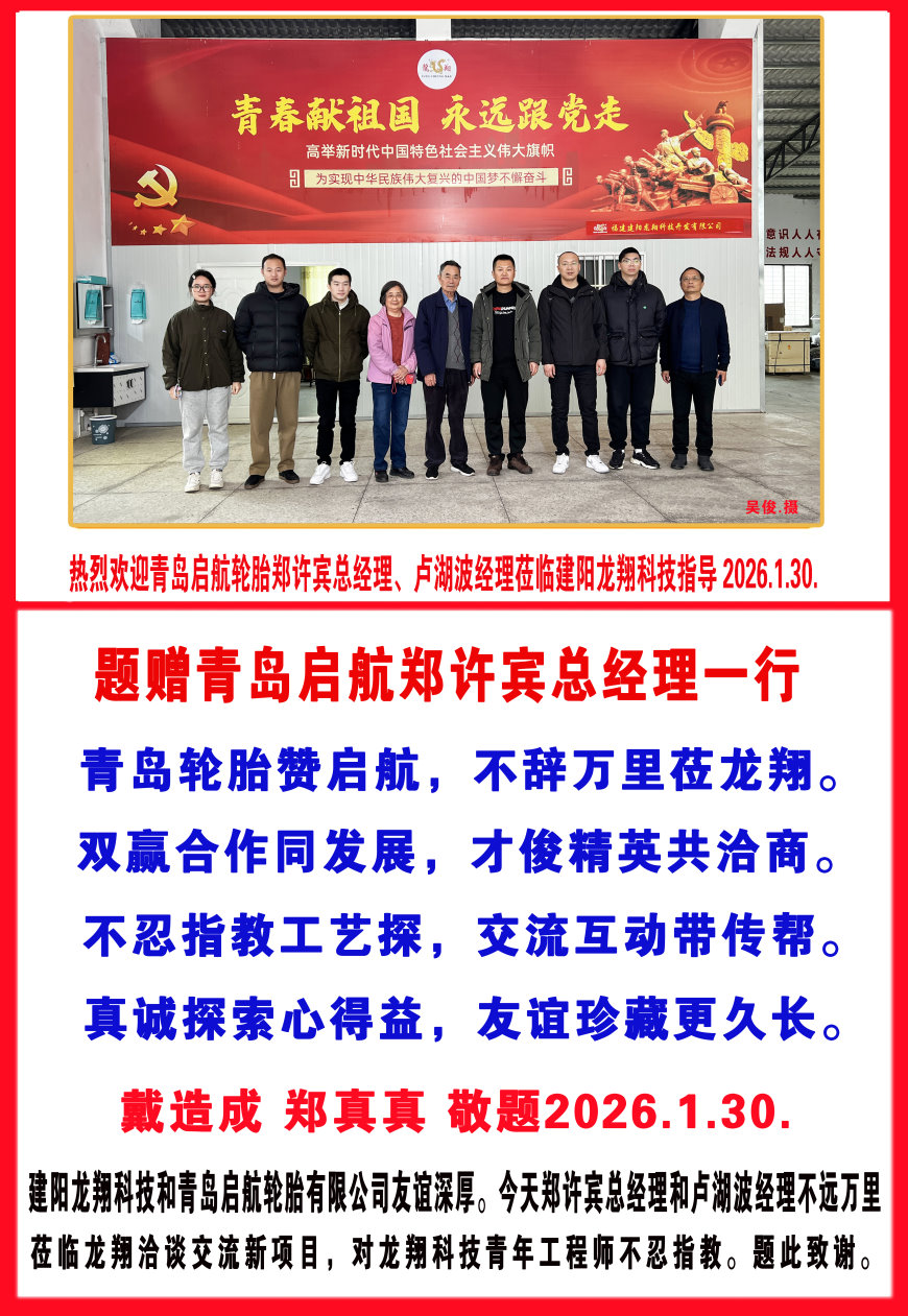 (13)青岛启航轮胎有限公司郑许宾总经理、卢湖波部长莅临建阳龙翔科技指导,和龙翔科技交流新的合作项目。2026.1.30.